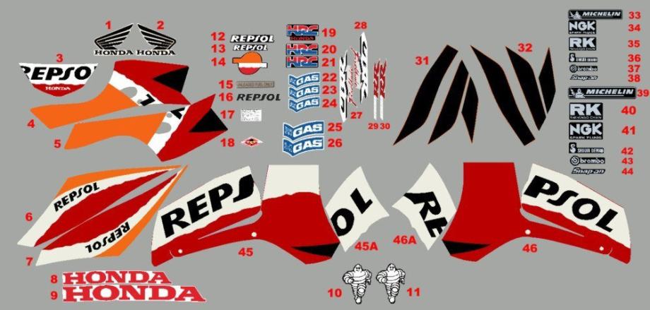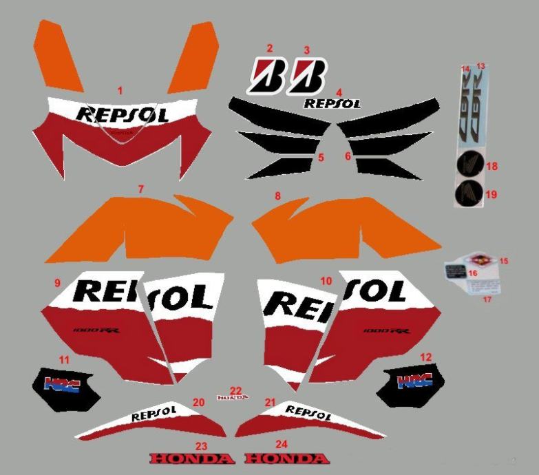 Prodajem zamjenske naljepnice za Hondu REPSOL komplet ili pojedinačno.