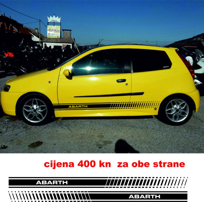 Cijena za naljepnicu iznad fara 20 eura, a 2 komada za bokove na vrata 40 eura
