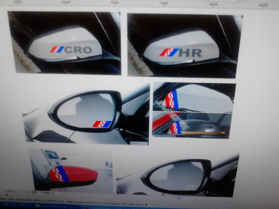 prodajem naljepnice za retrovizore svih marki vozila, u HR dekoru i druge šare ili logose.