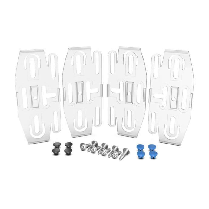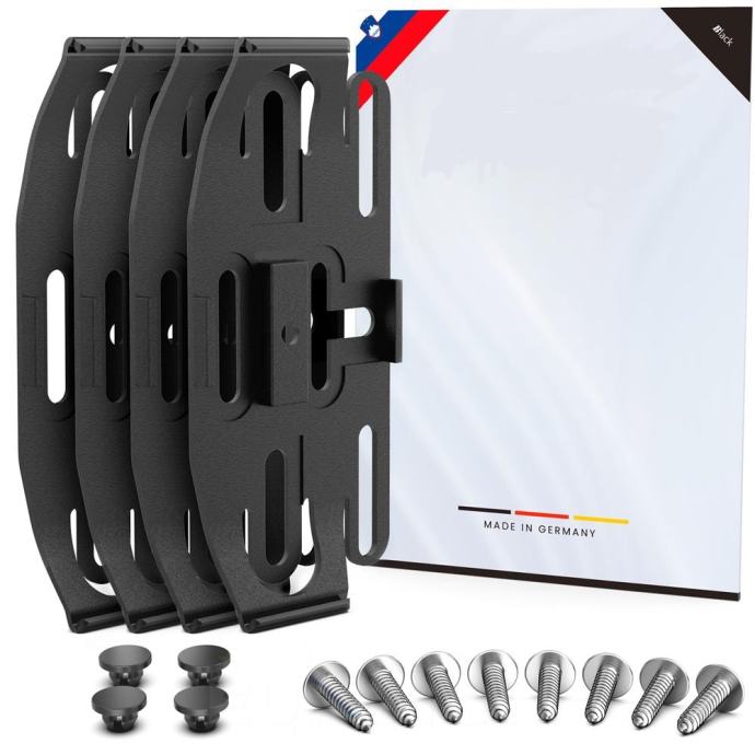 Komplet nevidljivih nosača registarskih tablica je idealan izbor za one koji vole izgled registarske tablice bez vidljivih nosača. Nema potrebe za lijepljenjem tablice, a samim time i riskiranjem oštećenja boje i laka prilikom skidanja tablice.