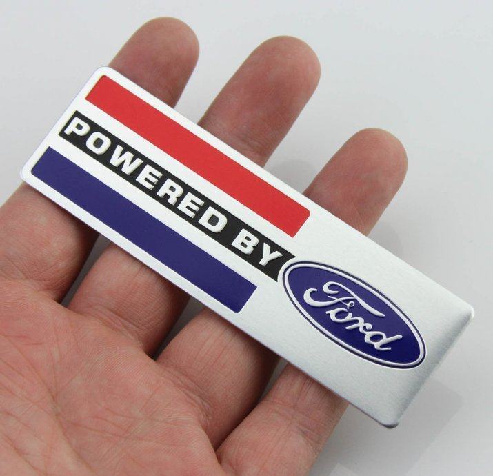 Prodajem metalne oznake Powered by Ford sa samoljepljivom folijom .
