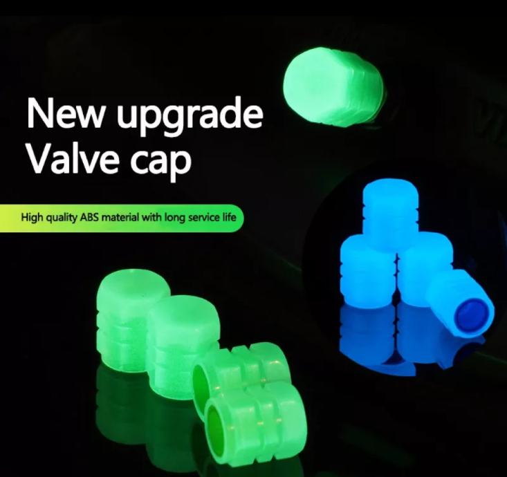 1. Set, 4 kom. specijalnih , ukrasnih kapica za ventile guma sa "luminoznim efektom"( zelene,plave,žute,crvene,