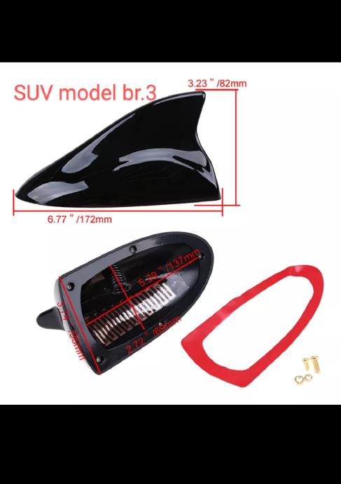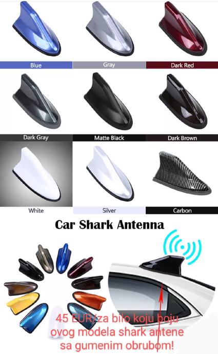 Oglašene shark antene, namijenjene su praktično za sve modele, 95 % osobnih vozila sa stražnjom krovnom antenom(potrebno je točno izmjeriti dimenzije baze antene na krovu: dužina, širina, visina baze u cm/mm)!