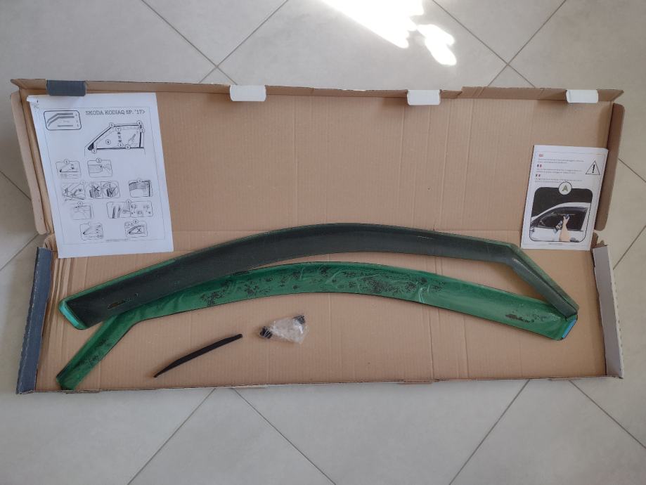 Novi i nekorišteni. "Dark smoke" izvedba (zeleno na slici je samo zaštitna folija). Pogrešno isporučeno (naručeni za Škodu Karoq) pa su višak. Uputstva za montažu (sa fotografijama) su u pakiranju. Novi koštaju 50€.