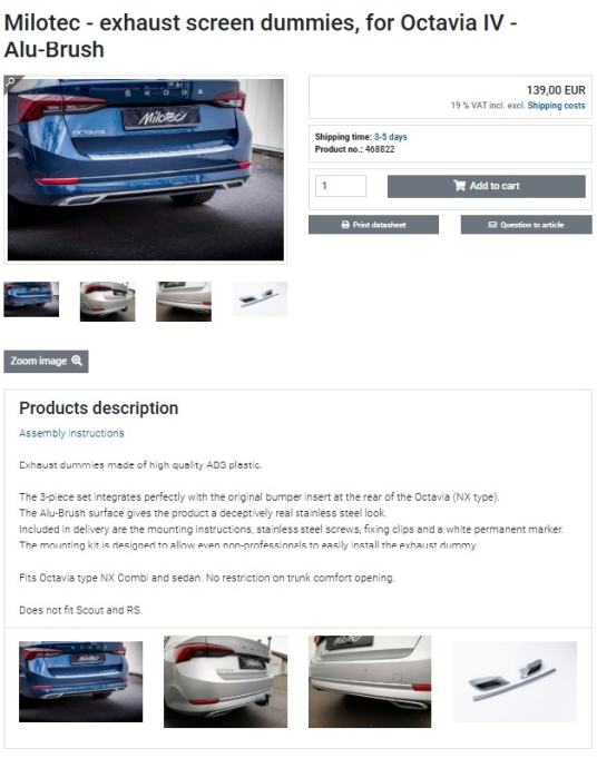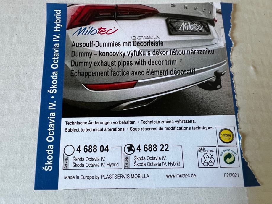 Prodajem rozetu auspuha za vozilo Škoda Octavia 4 ( NX) , original Milotec , alu bruch look , nije jeftina kineska kopija.