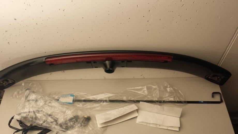 Original spojler sa trećim LED stop svjetlom, nikad montiran sa svim montažnim dijelovima (federi za pojačanje sile otvaranja gepeka) i naputkom za montažu. Svi detalji na slikama..