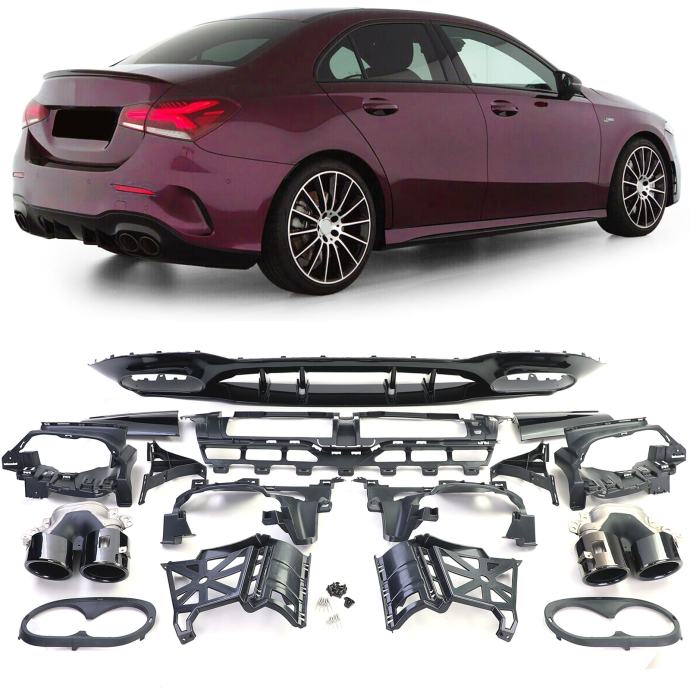 Glavne karakteristike proizvoda sportskog stražnjeg difuzora s crnim ispušnim cijevima za Mercedes A klase V177 od 18 su: