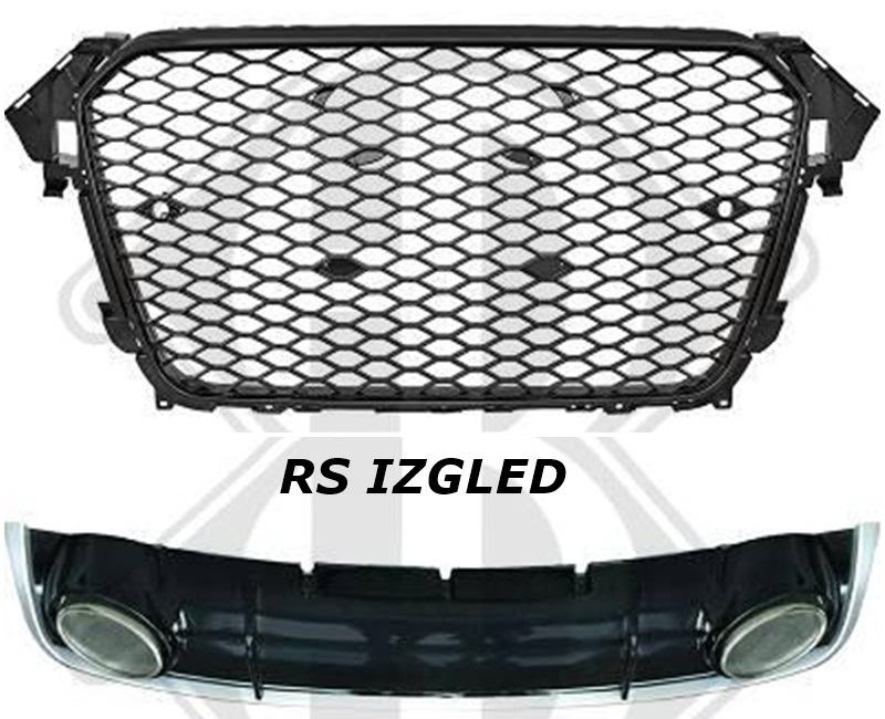 Sportska maska + difuzor s nastavcima auspuha za Audi A4 B8, redizajn model.