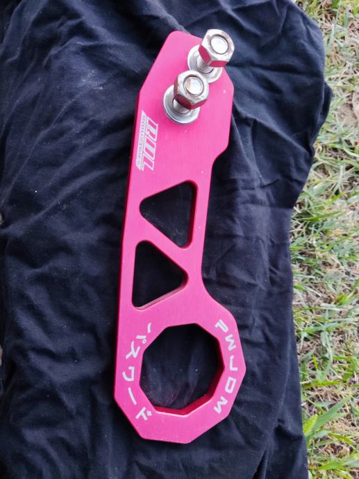 Prodajem tow hook sa slika, bio na autu par mjeseci. materijal je aluminij, poprilično je debel i masivan. Dolazi sa vijcima za montažu.