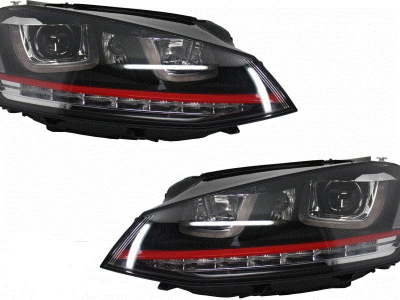 Volkswagen Golf 7 VII 2012- prednja svjetla 3D LED DRL i maska RED R20 GTI Look