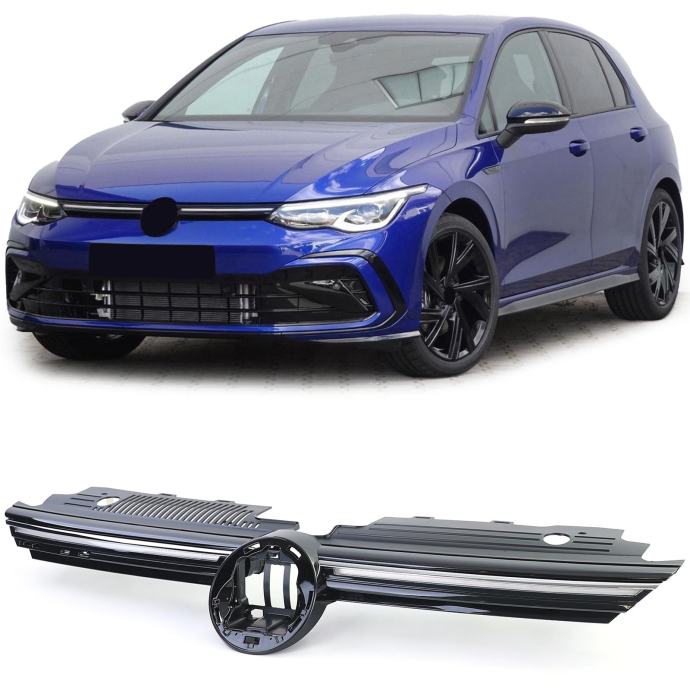 VW Golf 8 GTI iz 2019 Sportska maska s kromiranom trakom osvijetljena