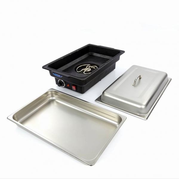 BANJA MARIA/ Chafing je standardni model koji je idealan za zagrijavanje hrane. Zgodan dizajn koji se lako podiže. Osim toga, lako se čisti. Robusne je konstrukcije i sastoji se od posude i poklopca od nehrđajućeg čelika, s crnim ABS dnom.