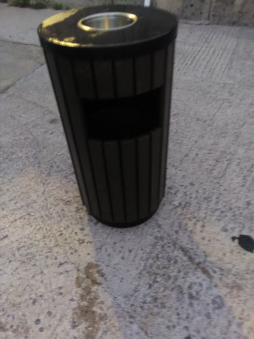 Kanta za smece i pepeljara modernog dizajna metalna sa drvenim letvicama koristena kratko nigdje ostecena ocuvana 2 kom