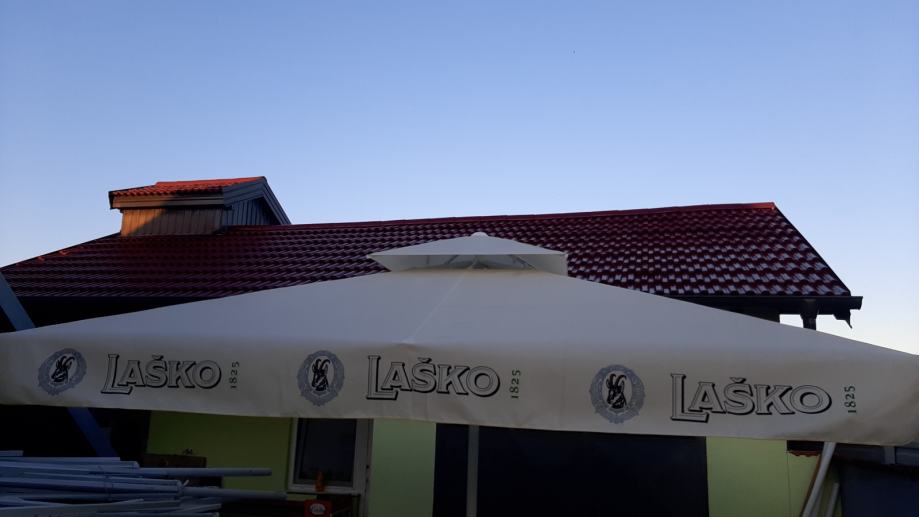 Ugostiteljski suncobran 3 5X3 5 met Teleskopsko otvaranje pomoću ručice Stalak Betonski sa kvarcnim kamencicima ili sa 4 kocke po izboru kupca