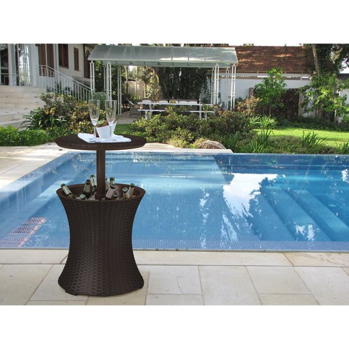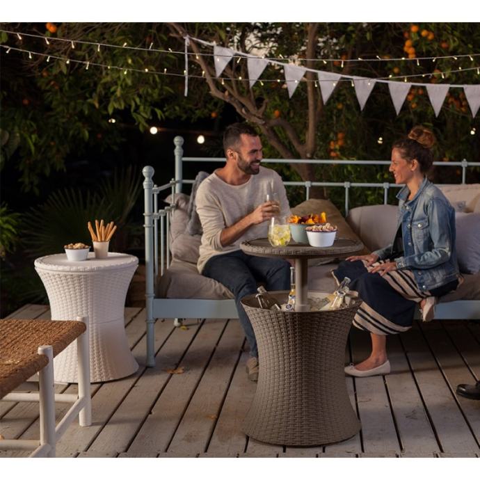 Stol za hlađenje je istodobno moderni stol za koktele i praktični hladnjak za roštiljade i druge zabave na otvorenom.