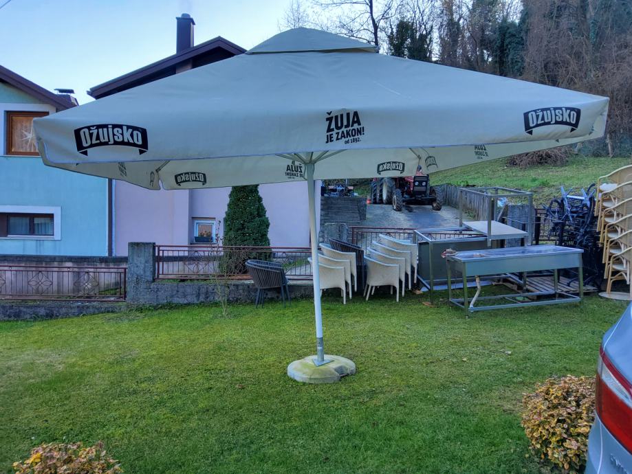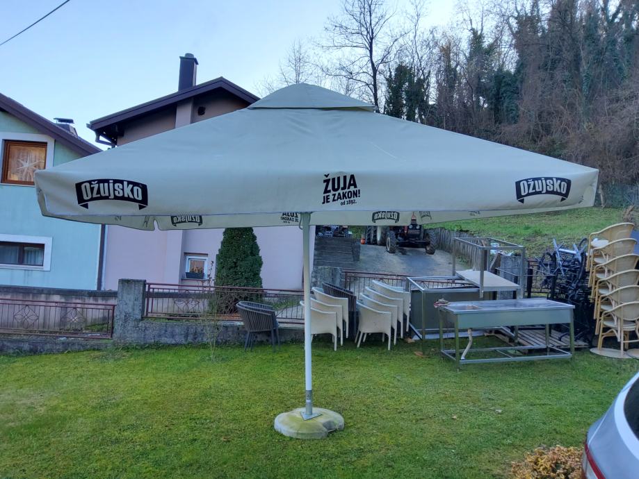 Profi suncobran iz naslova u jako dobrom I ispravnom stanju malo korišten ništa potrgano niti puknuto zajedno sa teškim (70 kg ) betonskih postoljem hitno prodajem za 259 eura kom molim poziv na broj 092 1223 023
