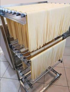 Sušara za tjesteninu - kratku i dugu paštu cod. DRY 50, 2200x1300xh2400 mm, kapacitet ulaska svježe tjestenine do 100 kg, kapacitet finalnog proizvoda 50-60 kg, sa jednim kolicima sa 26 komada drvenih pladnjeva sa mrežom od prehrambenog poliestera (dim. 1200x600 mm); touch screen sučelje od 7" za vizualizaciju i podešavanje ciklusa sušenja; podaci se mogu prebaciti na USB; konstrukcija termoizolacijski paneli visoke gustoće; grijanje zraka putem električnih grijača; ventilatori sa poravnavanjem cirkulacije zraka; izvlakači vlažnosti; snaga 7 kW, težina 350 kg; sa ili bez invertera regulacije cirkulacije zraka ventilatora.
