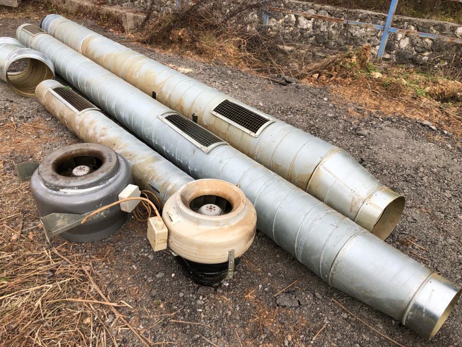 Cijevi su ukupne duzine 10 metara. Ventilacija je očuvana, prljava je od stajanja, spremljena u skladiste.
