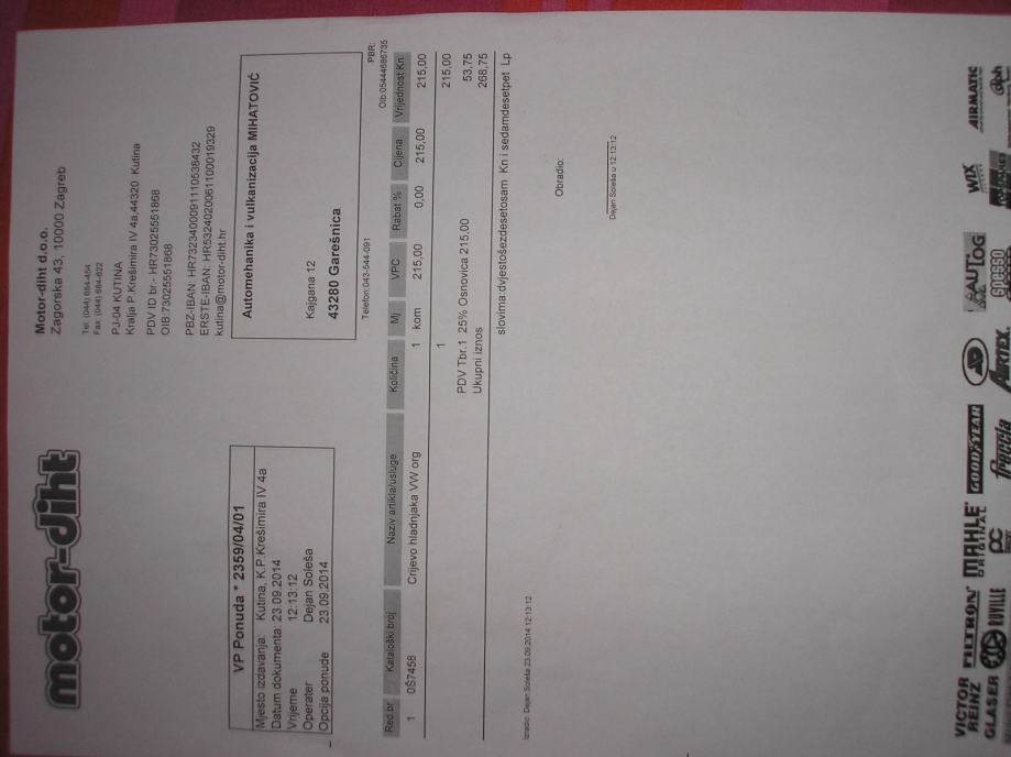 Novo, krivo kupljeno, zapakirano, orginal, kataloški broj 0Š7458, cijena 268,75 kao što se vidi na računu, cijena po dogovoru