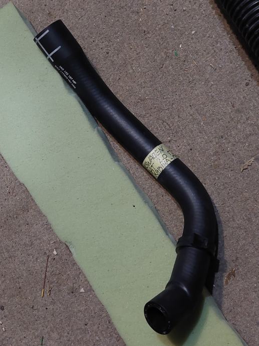 Potpuno novo (danas kupljeno) armirano gumeno crijevo dužine 330 mm s unutarnjim dijametrom 24 i 19 mm za rashladnu tekućinu spoj motor-kabina, za VW Passat, 2007. (vjerojatno sve godine tog modela). Kupuje se u paru (dva crijeva) za 85 E. Jedno sam ugradio, a ovo je ostalo. Cijena 30 E.