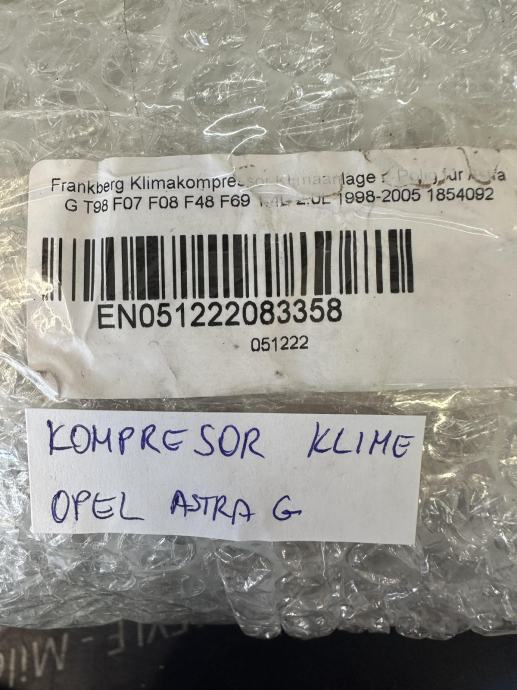 NOVO! Kompresor klime odgovara: OPEL ASTRA G, ASTRA G CLASSIC, ASTRA H, ASTRA H CLASSIC, ASTRA H GTC, ASTRA H/KOMBI, MERIVA A, ZAFIRA B, ZAFIRA B/MINIVAN 1.2-2.0 03.00-