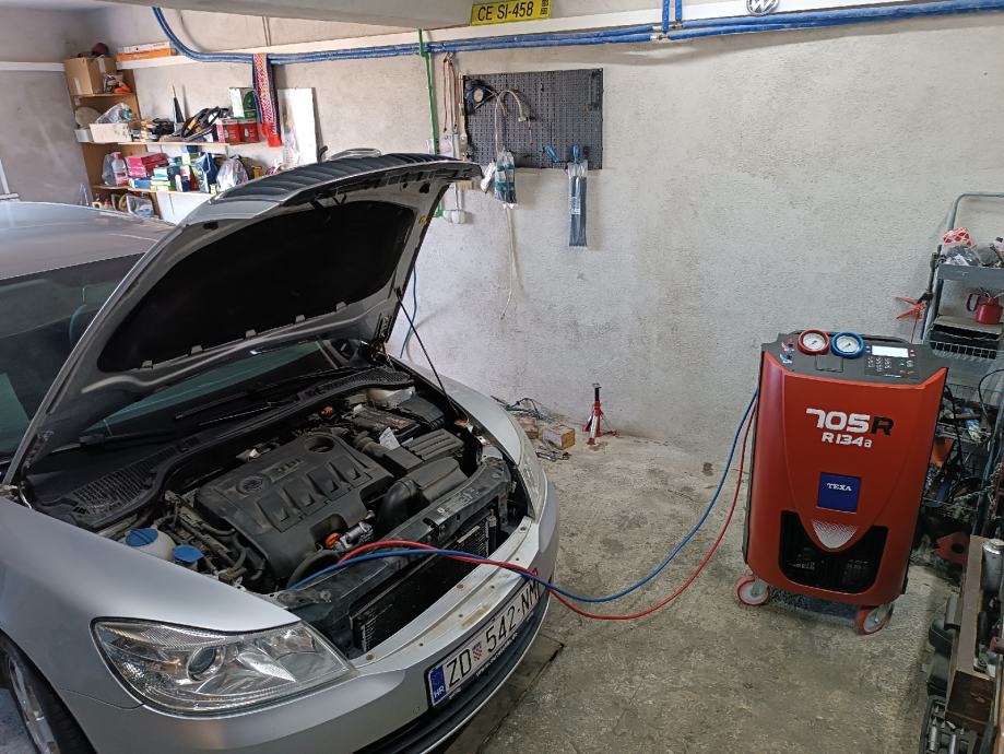 Zamjena filtera, hladnjaka, punjenje klime na traktorima, bagerima, kamionima. Moguć dolazak na teren za vozila koja nisu u mogućnosti doći na punjenje. Informacije i rezervacije termina, kao i ostali upiti na broj telefona +385998854870