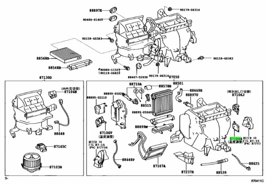 Motorčić za podešavanje temperature, Pogon zaklopke grijanje/hlađenje ili, jednostavnije i originalnije, SERVO SUB-ASSY, DAMPER Genuine Toyota (87106-05030)..