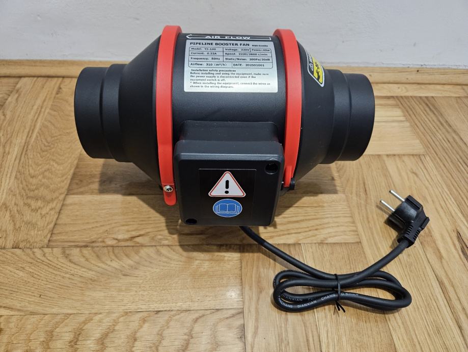Prodajem cijevni ventilator promjera 100 mm s daljinskim upravljačem, mogućnost kupnje bez daljinskog.
