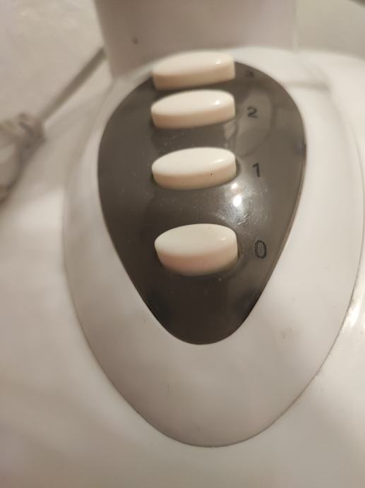 Ventilator je korišten par sezona, ali u odličnom stanju – radi tiho i snažno puše, nema buke, vibracija ili čudnih zvukova. Sve tri brzine rade 100%, tipke responzivne, mrežica čista (oprala sam prije slikanja).