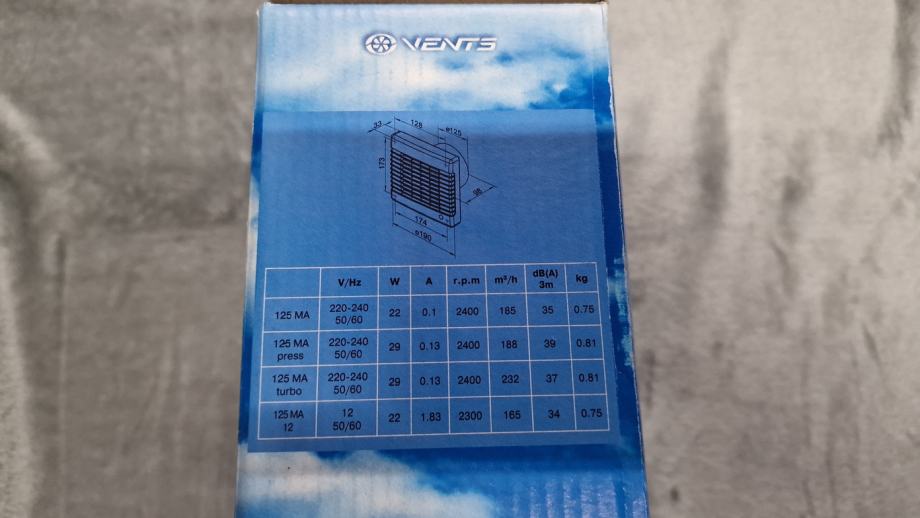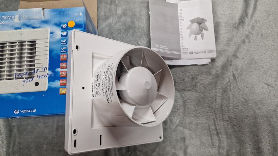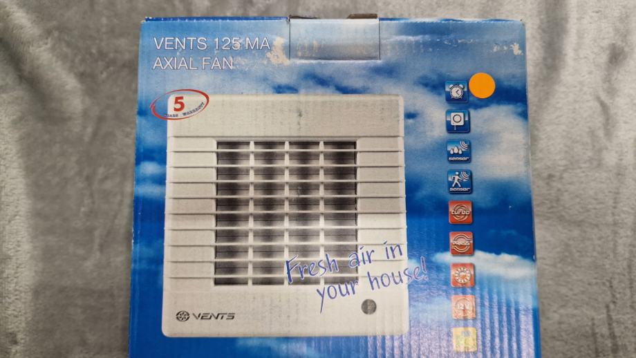 Kupaonski ventilator Vents, promjera 125 mm, novi, zapakirani, sa računom i garancijom.