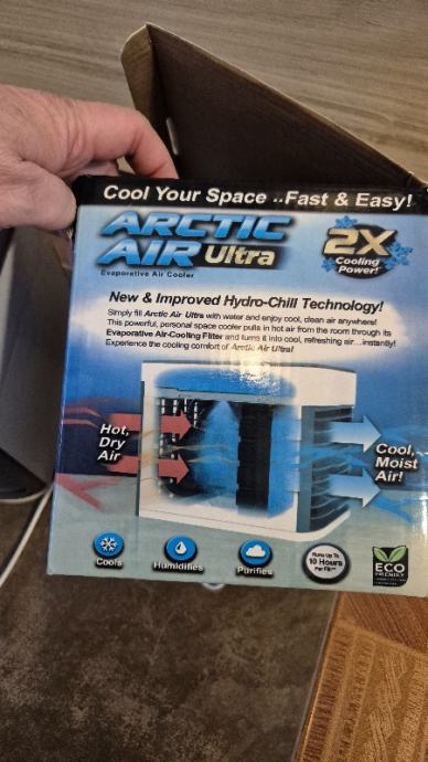 Arctic Air Ultra je prijenosni klima uređaj koji hladi i vlaži prostor. Ima tri brzine ventilatora i višesmjerni ventilacijski otvor i ambijentalno svjetlo