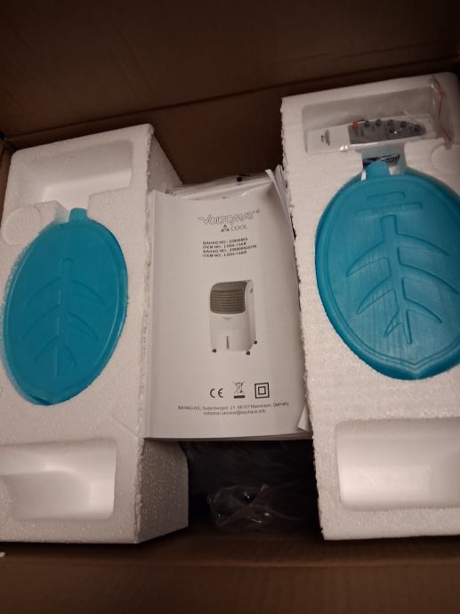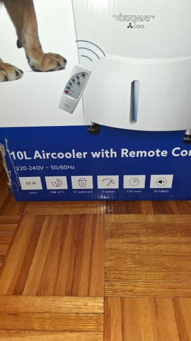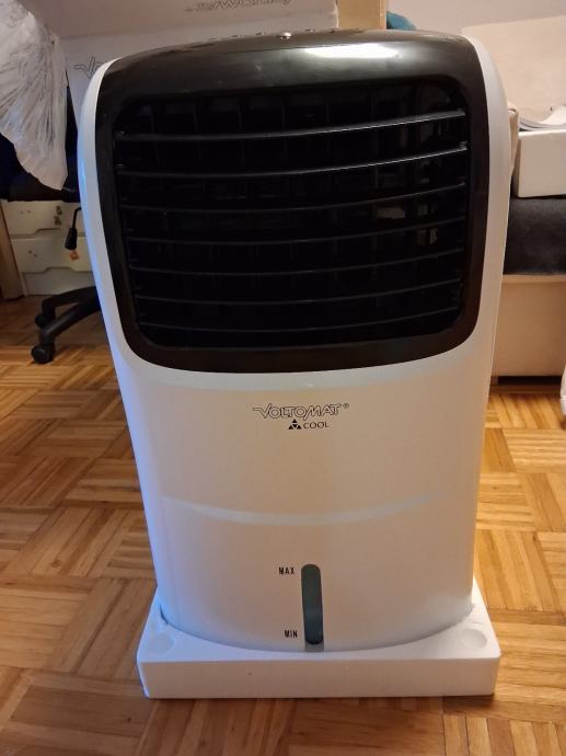 Prodajem Voltomat Cool ventilator s hlađenjem hladnom vodom, kapaciteta 10 litara, s daljinskim upravljačem. Uređaj je bijele boje s tamnim rešetkama, kompaktnih dimenzija i prikladan za korištenje u zatvorenim prostorima. Dolazi s dvije gel pločice u obliku lista za dodatno hlađenje te svom originalnom dokumentacijom.