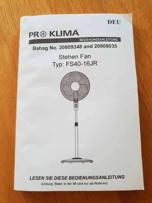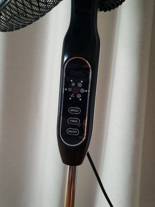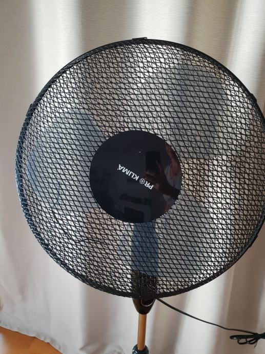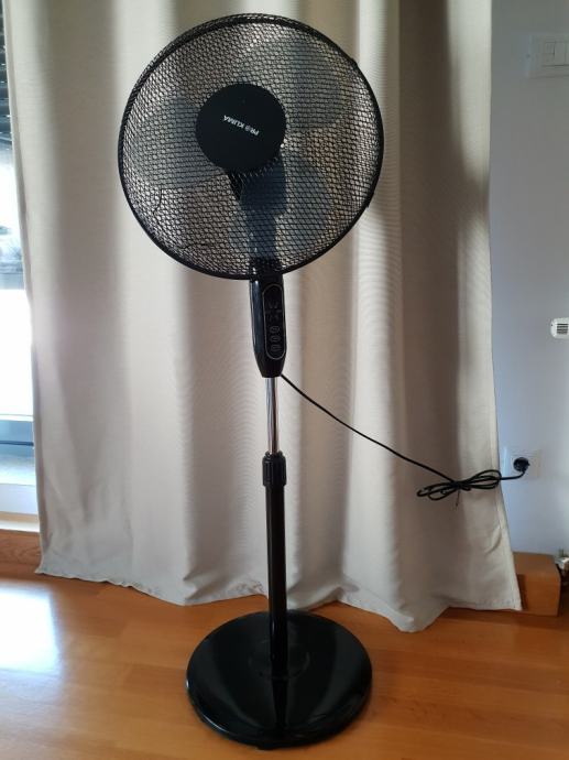 PROKLIMA, stajaći ventilator sa daljinskim upravljačem, promjera 45 cm, crne boje, visina se podešava do 1m 40 cm. Kut strujanja zraka se može namjestiti do 120 stupnjeva. Korišten doslovno mjesec dana, kao nov!