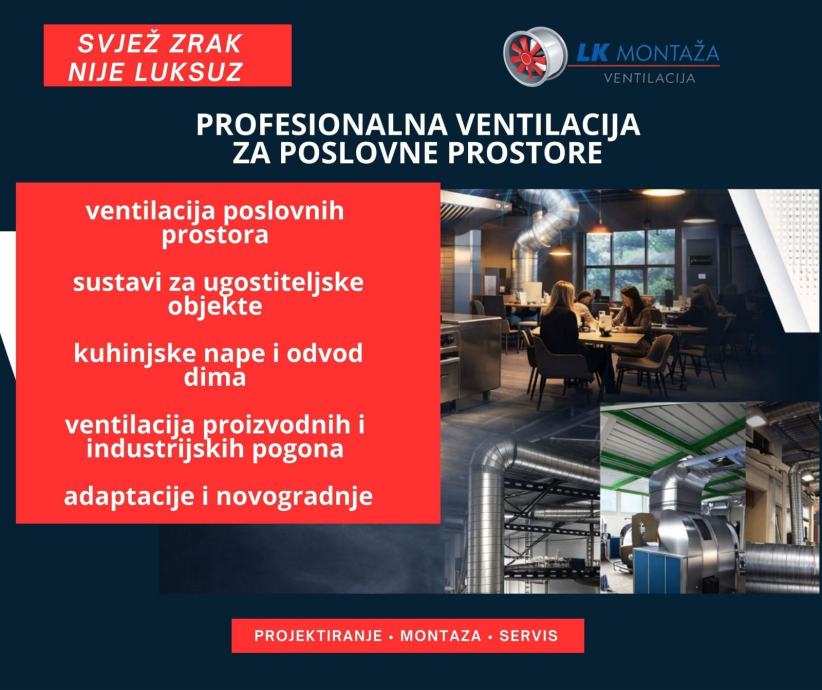 Montaža svih vrsta ventilacija.