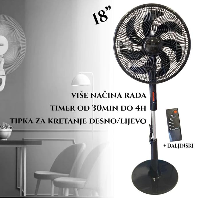 Ventilator ima stabilno i čvrsto podnožje, a krila i sigurnosna mreža glave ventilatora izrađeni su od visokokvalitetnog metala.