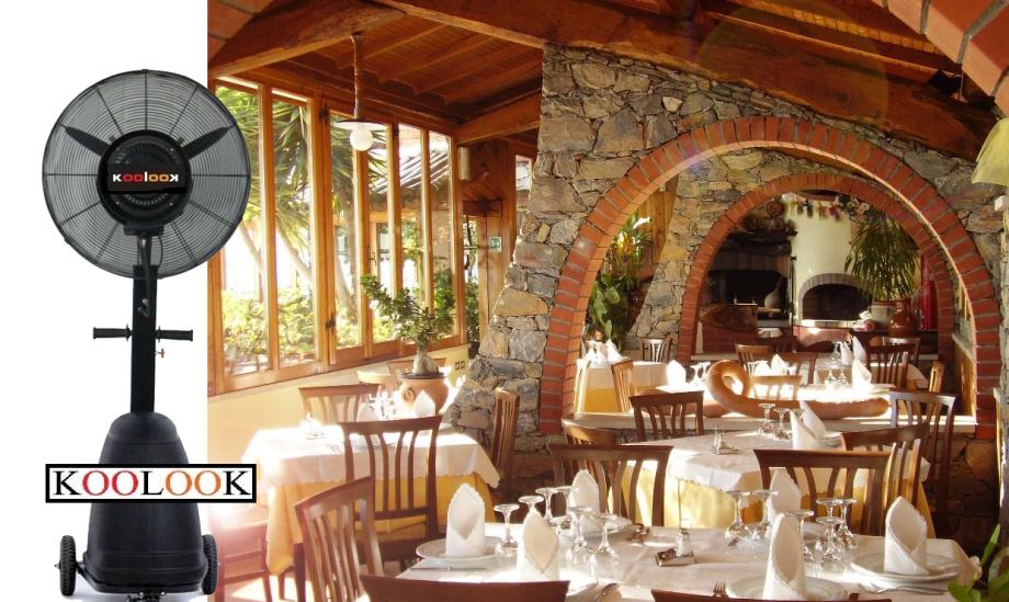Ventilator s ovlaživanjem zraka idealan za ovlaživanje i hlađenje lokala, bara i ristorana do 50 m2. Smanjuje temperaturu od 2 do 8 °C! Istovremeno smanjuje prašinu i pročišćava zrak. Prikladno i za kućnu upotrebu.