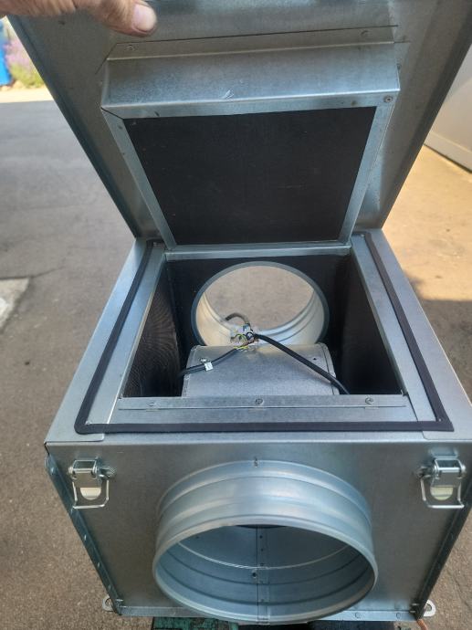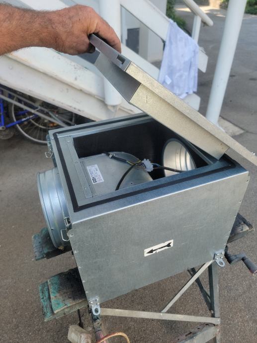 isti je u izoliranom(50mm) metalnom kučištu ,dimenzija 370x400x330, sa obostranim okruglim otvorom za spiro cijev fi 200,ispravan u odličnom stanju,spreman za ugradnju.