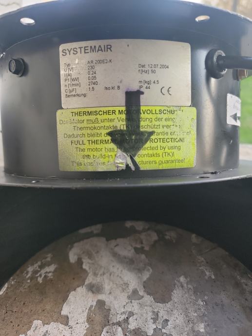 Isti ispravan,promjer vent. fi200mm + prirubnica,znači namijenjen za spiro cijev 200mm,uz isti poklanjam i 1.štucnu za fi 200.