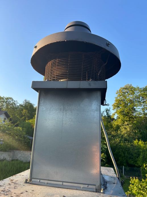 Prodajem profesionalni ventilator za dimnajk Vortice TRM 15 ED 4P 400c/2. Kupljen u Pavo-promet vent 2022. godine. Može se postaviti na dimnjak kuće, dimnjak od pečenjare ili na dimnjak kuhinjske nape. Pogodan je za od odnju i dima i topline. Korišten je bio u privatne svrhe doma na zidanoj pecenjari sto znaci da je u upotrebi bio povremeno. Radi izvrsno bez greške. Ima potenciometar za reguliranje brzine vrtnje Vortice C2.5 tiristorski. Može podnijeti toplinu 400c vise od dva sata. Uz njega, po želji, poklanjam i limeno postolje koje si možete prekrojiti prema potrebi. Promjer kape je 60cm, a širina postolja 40x40. Uređaj je demontiran i spreman za preuzimanje.