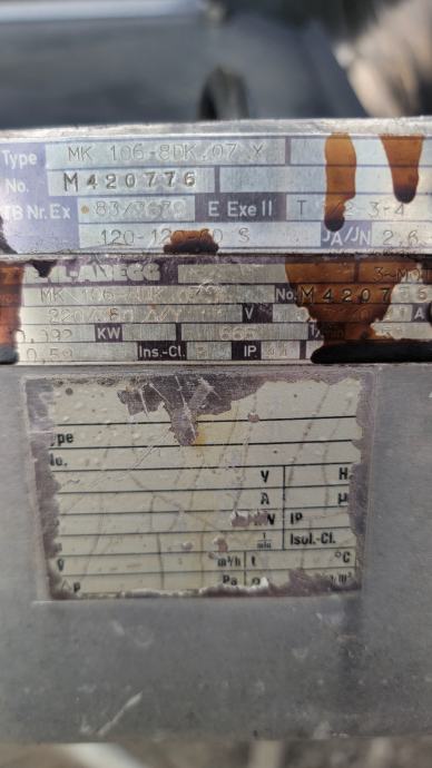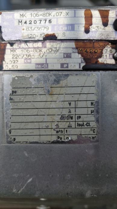 Isti 220/380V☆/Y ,0.71/0.41A , 0.092Kw,665 min (tehnička kertica u prologu sa slikama)