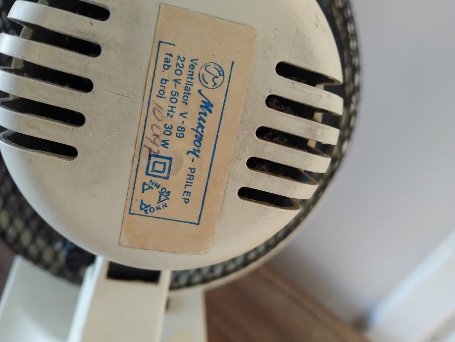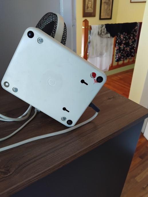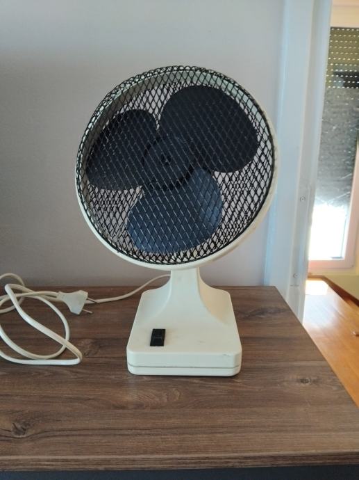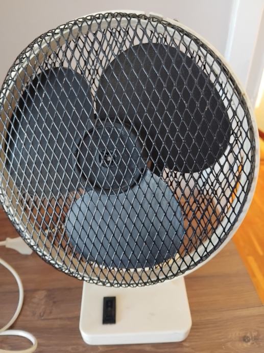 Stolni ventilator. Moze se na dvije kuke objesit na zid. Ima dvije brzine. 30w. Stariji ali super radi.