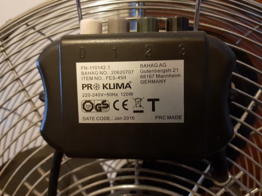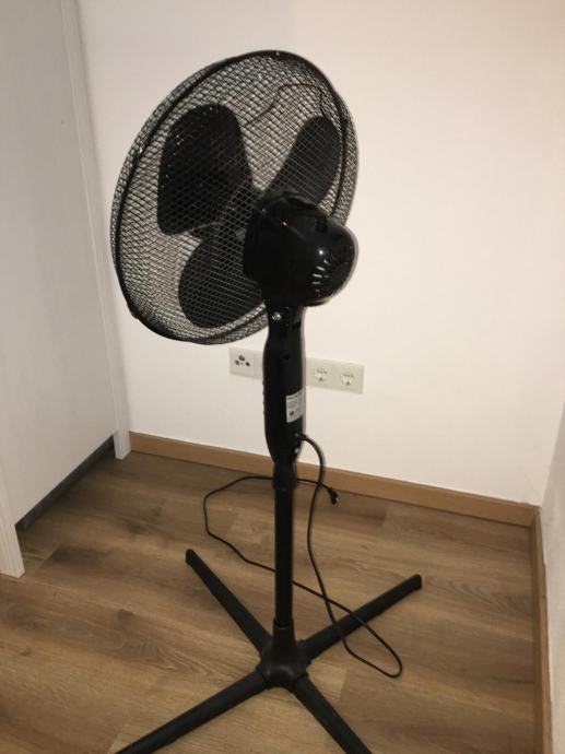 Prodajem samostojeći ventilator njemačkog proizvođača Proklima. Promjer od 45 cm, podesive visine do 1 metra i kuta strujanja do 120 stupnjeva, s tri brzine. Lako sklopiv, s tri brzine vrtnje, malo korišten, velike snage. Pogodan za male trgovine, vikendice, kontejnere, kafiće i sl. Sive boje.