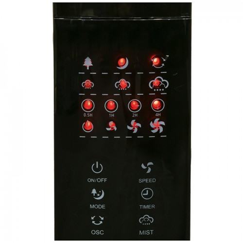 Upravlja se na dodir ili daljinskim upravljačem, a sadrži tri stupnja brzine i raspršivanje, ovlaživanje 250 ml/h, te timer do 7.5 sati za automatsko isključivanje, promjer lopatica 40 cm, oscilacija 75°, kapacitet spremnika za vodu 3 lit, točkići za lakše pomjeranje