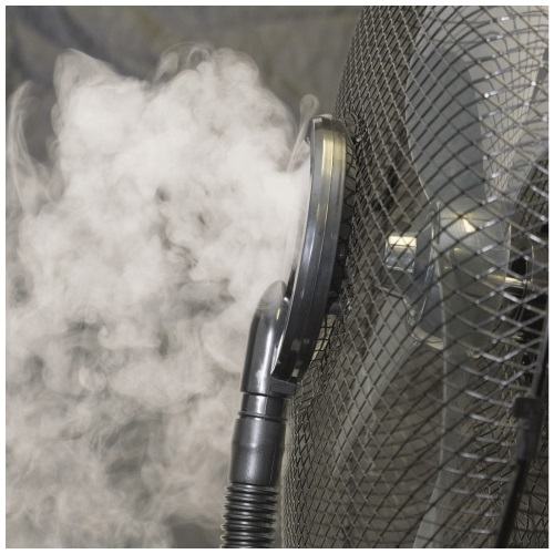 Stvara potpuno prirodni osjećaj svježine u prostoru. Ventilator sa raspršivačem imitira prirodni proces rashlađivanja vodenom maglom, proizvodi fine ,male i ugodne vodene kapljice koje isparivanjem hlade otvoreni prostor.