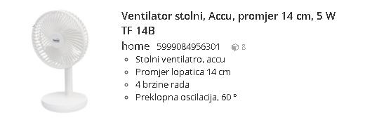 Ventilator stolni, Accu, promjer 14 cm, 5 W,TF 14B _ 199.90kn