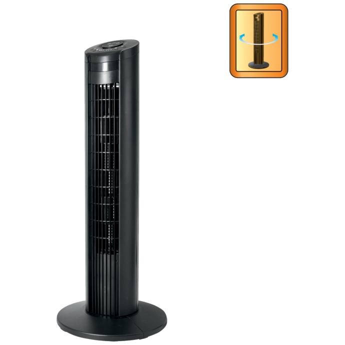 Ventilator stupni, rotacioni, efektivan u hlađenju, jednostavan za postavljanje. Zahvaljujući konstrukciji koja štedi prostor, maloj masi, ventilator se može vrlo brzo premjestiti te je znaći prostorno veoma upotrebljiv. Praktična funkcija timera omogućuje vremenski upravljivu uporabu koja štedi Vaš novac. Uređaj ima tri brzine, oscilirajući je. Kod osciliranja ventilator se neprestano kreće lijevo / desno do 75° . Ove funkcije mogu se podesiti preko daljinskog upravljača ili na samom uređaju. Učinkovit, elegantan, dizajniran stupni ventilator je idealan za urede, poslovne prostore, domove....