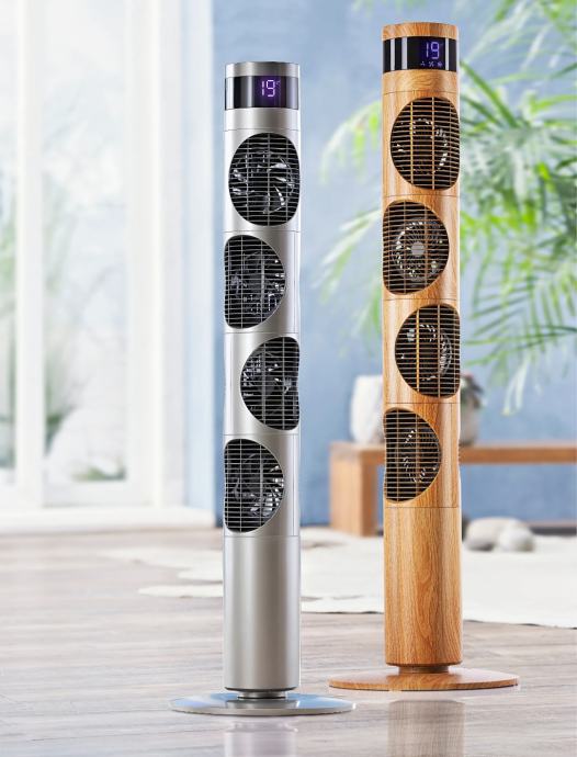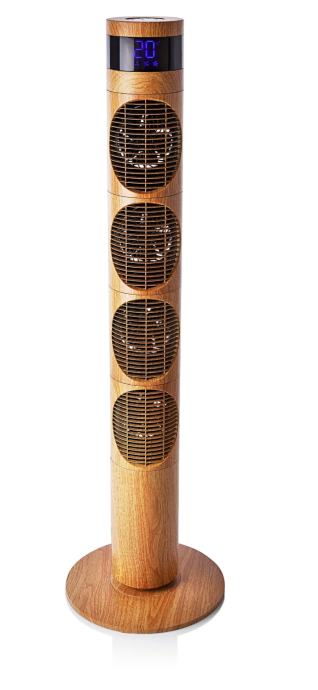 Ovaj ventilator ima 4 rotora, od kojih se svi mogu zasebno namjestiti. Također možete aktivirati rotirajući pokret tako da hladan zrak prodire na sve strane. Sa svojim dodatnim praktičnim opcijama podešavanja, ventilatorom se također može lako upravljati iz daljine pomoću daljinskog upravljača. Uključuje programiranje timera za automatsko isključivanje između 1 i 12 sati.