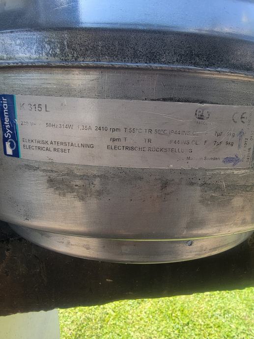 Prodajem insustrihski kanalni ventilator renomiranog proizvođaća Systemair-Swiden, model K 315 L , 230V ,50Hz, 314W ,1.35A , 2410rpm, T50°C ,7ụf , 9kg .