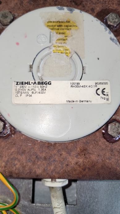 Isti ima ZiehlAbeggov motor 230V ,50 Hz ,0.31kW ,1.35A , 1375min , 6uF .