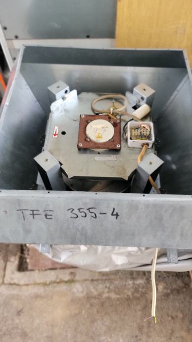 Prodajem navedeni krovni ventilator sa okomitim ispuhom zraka, model FE TFE 355 -4 proizvođača Systemair